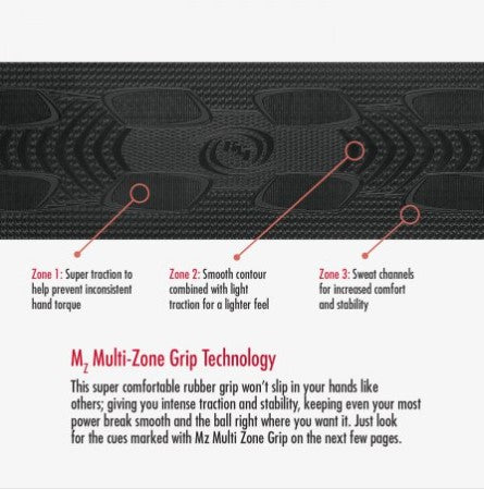 - Mz Multi-Zone Grip wrap for intense traction and stability even in the sweatiest of hands